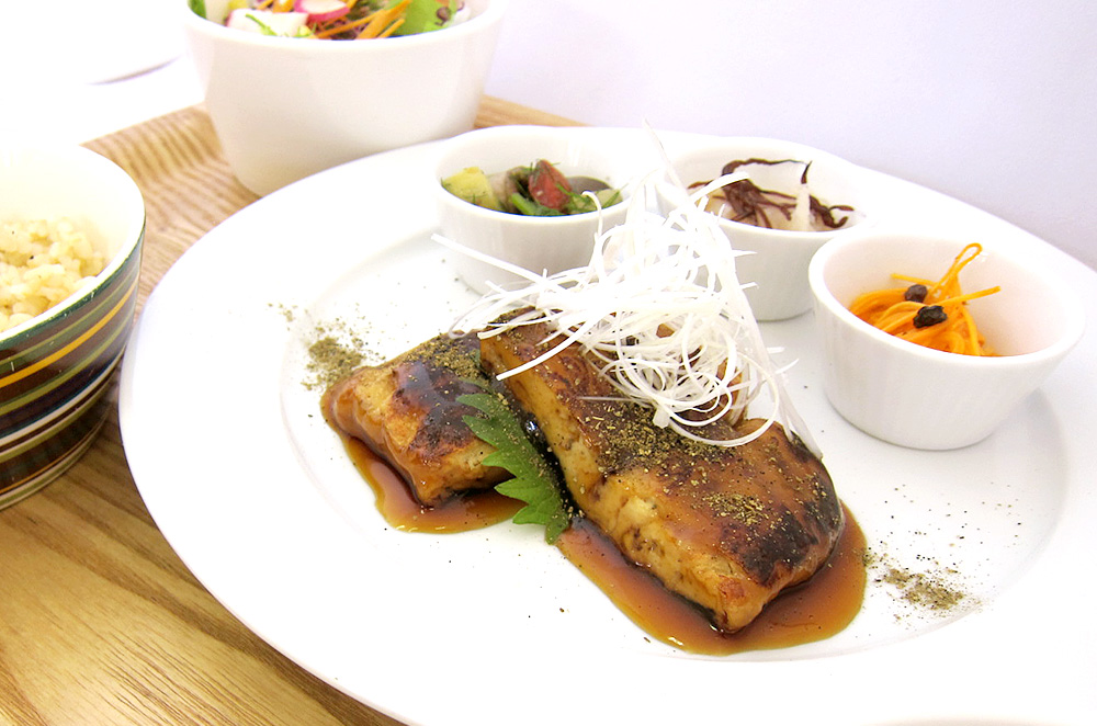 JUGEMテーマ: マクロビオティック 月のリズムプレート ¥1,000(税抜) ※表記は本体価格(税抜)となります。精算時、消費税8%が加算されます。 【Point】 新月は肝系を強化する青色 ( 緑色 ) 食材、 麦類を食べましょう。 今回は麦入り玄米ごはんを用意してます。 【主菜】鰻の蒲焼もどき 7月25日は土用の丑の日です。毎年大人気の豆腐でできた鰻もどきはいかがですか? 【スープ】惣兵衛玄米味噌の冷汁 茄子、胡瓜、豆腐と具沢山な冷汁です。 お味噌で塩分補給! 【副菜】旬の副菜3種 旬の食材を...