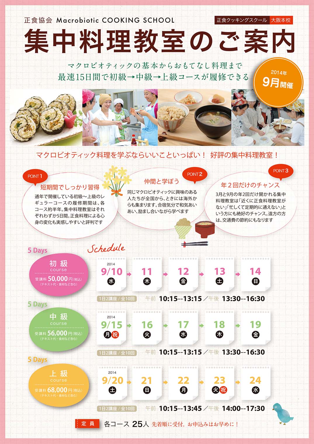 JUGEMテーマ:マクロビオティック こんにちは、はじめまして。 正食協会事務局の儀間です。 これから正食クッキングスクールのいろいろな情報をお届けしていきます それではさっそく、、 皆さまおまちかね、9月集中料理教室の受付を開始しました! 「近くにマクロビオティックの料理教室がない」、 「忙しくて定期的に通えない」という方に絶好のチャンスです 各コースそれぞれわずか5日間。 最速15日間で初級→中級→上級コースが履修いただけます。 短期間でしっかりがっつり学べるので、 正食料理...