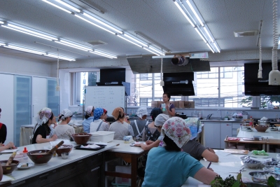 JUGEMテーマ:マクロビオティック 集中豪雨で局地的被害をもたらしている秋雨前線ですが、そのおかげでぐっと秋めいて、朝晩が過ごしやすくなっている大阪、そろそろ上着が欲しくなってきています。さて、今回は8月25日と27日におこなわれたレギュラーコースの模様をお伝えします。8月25日はニュースにもなったほどの豪雨でした。授業前には「今日、授業はありますか?」とのお問い合わせのお電話が多数。正食クッキングスクールは、一応警報が出ていても開講しております。(巨大台風が大阪直撃、といった場合は休止になることも...