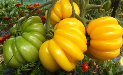 JUGEMテーマ:トマトが大好き! 購入リンク: http://www.marcheaozora.com/?pid=141770852 ミティアムサイズのトマトで330〜600gmになります。 花が咲いたような形になることからFlorentineと呼ばれています。 生食、ソースに向いています。 和名: フローレンティンビューティートマト 英名: Florentine Beauty Tomato 学名: Lycopersicon lycopersicum 産地: ナント・フランス 形態: ナス科ナス属、一年草 草丈: 150〜190cm 収穫: 85〜90日 種別: 固...