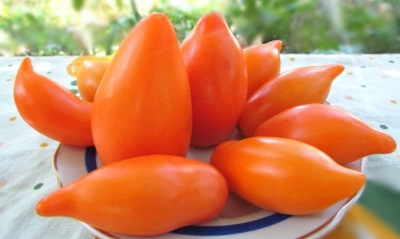 JUGEMテーマ:トマトが大好き! 購入リンク: http://www.marcheaozora.com/?pid=142053769 *** 日本初上陸の品種です。 *** オレンジ色で8〜10cm、60gmのサイズになり、先っぽが尖っている品種です。 ジューシーで糖度が高いのが特徴です。 遺伝子組み換えはしていません。 収穫された農作物を食用として販売しても問題ありません。 栽培後に採種された種を再販しても問題ありません。 和名: ドラゴンズティアートマト 英名: Dragon7s Tear Tomato 学名:...