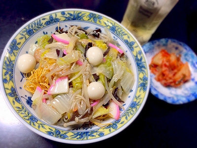 今日の晩ご飯 海鮮皿うどん キムチ ハイボール 今日はパパさんが仕事でおらん日なので 晩ご飯は皿うどんにしたよ( ´∀` ) パパさんはこういうの食べんから 別のおかず用意せんとあかんのだ パパさん以外はみんな食べるから これ作るだけで済むんで楽なんやもん♪ だいちゃんは量がいるから2人前用意したし(笑) 作り方はいたって簡単 具材を炒めて皿うどんの素と水を入れるだけ(ノ∀`) 今回の具は白菜、もやし、きくらげ、かまぼこ うずらの卵、シーフードミックス(...
