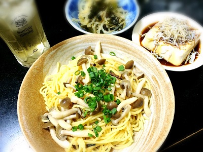 今日の晩ご飯 しめじの和風パスタ もやしとわかめの和え物 しらすのっけ冷奴 ハイボール 今日のパスタは松茸のお吸い物を使ったよ なんかCMでやってたみたいで ママさんが食べたがってたから HPでレシピ見て作ってみた( ´∀` ) すっごい簡単やのにウマウマやったわぁ♪ 今度同じ松茸のお吸い物を使って スープパスタを作ることにしたよ それもHPにレシピ載ってるんよね( ´艸`) これも絶対美味しいはずやわ もやしとわかめの和え物は ポン酢+砂糖+ごま油で味付けした...