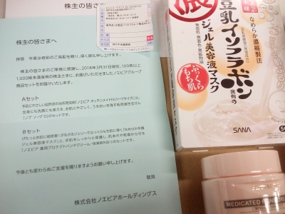 ノエビアちゃんから 洗濯ちた 馬株主優待貧が届きますた! ノエビアちゃん ありがとー! けりどもー? げんかはー? とっても おやすいのねぇーん!? (株)ノエビアホールディングス (4925) 権利確定月 9月末日・3月末日 単元株数 100株 株主優待の内容 100株以上 自社グループ商品セット(税抜2,000円) ...