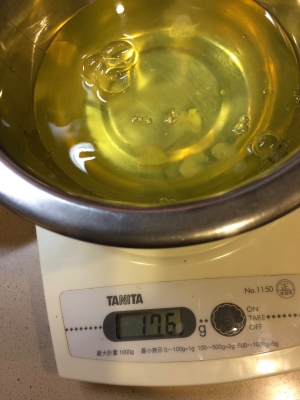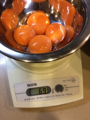 JUGEMテーマ:プリン とうとうこの日が来てしまった。 プリンの再現性の低さに悩んだ私、とうとう原料、 分量の厳密化に手を出してしまいました。 ま、簡単に言えば卵黄と卵白を別に計る事にしたってだけなんだけど。 今回は卵4っつで、卵黄55g卵白126gで計181gだからかなり少ない。 今回からは牛乳も記録する事にしてみる。 農協牛乳、購入日に使用。 温度も変化を一旦諦め、130℃で50分にしばらく固定することにした。 そして写真の通りカラメルをもどしてみた。 やっぱりカラメルの色が...