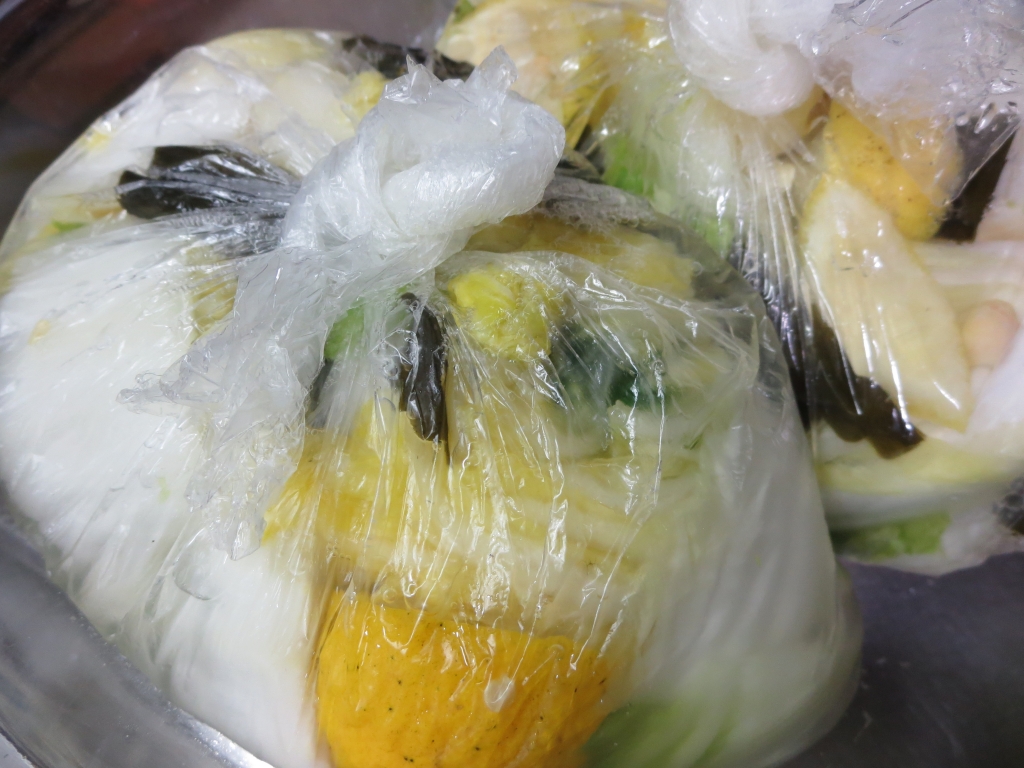JUGEMテーマ:クッキング♪ 白菜2/1¥59買ってしまった。 白菜漬けを作りました。 畑の白菜です。 筋が多く中まで緑(;_:) やはりプロは違いますね(*^^*)
