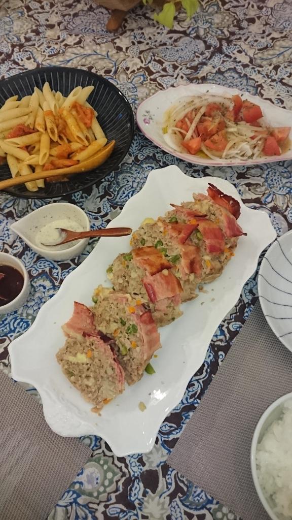 JUGEMテーマ:今日の晩ご飯 今日は土曜日で、しごとがスムーズに流れたので早くに帰宅できました。 なので、久しぶりに家族の好物をゆったりと用意しようと思いました。 そこで、チョイスした献立は<ミートローフ>です。 簡単で美味しいけれど、うちはオーブンで焼き上げるので時間がかかってしまいます。 で、頑張ってつくりました! 週末だけ帰ってくる大学生の娘も喜んでたくさん食べてくれました。 残りは下宿先に持ってかえるそうです。 豪華な外で...