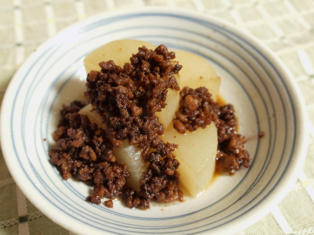 JUGEMテーマ:日記・一般 JUGEMテーマ:今日の晩ご飯 昨日行ったスーパーのタイムサービスで大根一本まるっと購入したので、今日は大根消費メニュー。 味の素のレシピサイトから、簡単に出来そうなものをチョイスして作ってみた。 ◇肉みそ大根「ほんだし」仕立て https://park.ajinomoto.co.jp/recipe/card/800235/ 田楽みそが必要だということに作り始めてから気付き、やっつけで田楽みそ自作。 八丁味噌を使ったせいか、む...