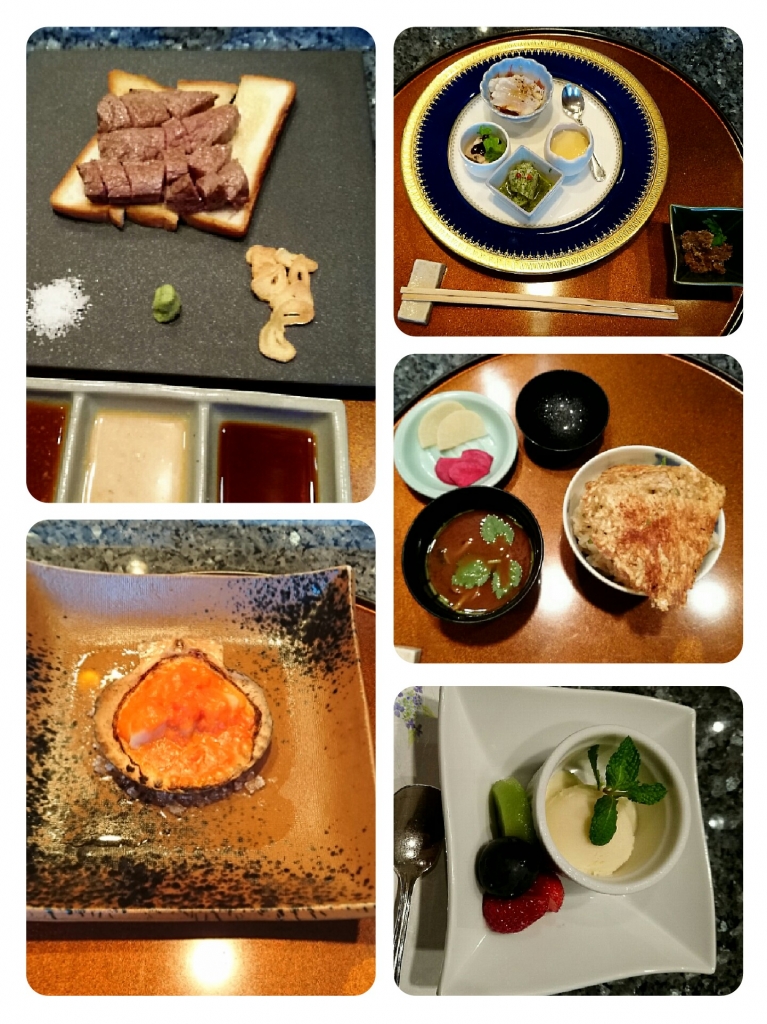 JUGEMテーマ:今日の晩ご飯 フネでございます。こんばんは! 先日の今治国際ホテルでのディナー🍴です! 右上が前菜、左下がホタテのトマトソース、左上がメインのステーキ、右真ん中はガーリックライス、下はデザートのアイスクリーム。 写真忘れましたが、焼野菜とサラダもありました。 ステーキレストランですので、目の前で焼いていただけるパフォーマンスや、シェフのお話しも楽しく、大満足のディナーでした。 2回もドタキャンしたあげくのリベンジ...