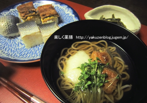 久しぶりに晩ご飯写真でもアップしようかと。 今回はなんとなく「麺類」編で! 禁断?の炭水化物重ね。 ま、おそばは半玉なのでよしということで。 ほんのちょっぴりのうなぎの蒲焼を使って、自家製押し寿司とうなぎとろろそばを作ってみました。 もうひとつの押し寿司は、市販の小肌酢漬けを使ったもの。 副菜は私の大好物のひとつ「茎わかめ」の炒め煮。 「土用の丑の日」にはうなぎを食べなくなってはや数年。 (理由はこちら(外部サイトに飛びます)に書きましたのでよかったらご...