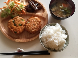 JUGEMテーマ:今日の晩ご飯 今日の夜ご飯は珍しく写真をとってみました。 てりやき豆腐ハンバーグ(4種)にピリ辛こんにゃく(2種)、 サラダ(4種)にご飯味噌汁(7種)です。 てりやき豆腐ハンバーグははじめて作ったけど 個人的には美味しかった! はじめて作る料理だけは 張り切る傾向にあります^ ^笑 ちなみにこの料理、ボリューミーなのに コストはかなり低い。 ムネ肉だしね。 お肉200円、豆腐40円、枝豆50円くらい?、 ごま10円くらい?、卵10円だから お弁当分まで作れて310円ほどかな。 節約メニュー...