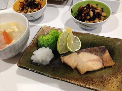 JUGEMテーマ:今日の晩ご飯 JUGEMテーマ:家庭料理のレシピ にほんブログ村 こんにちは。 今日の晩御飯は和食です。 以前コストコでかってたブリの塩焼き。 コストコのぶりっておいし〜〜〜。身がぷりっとしてて★ ぶりかま見つけた時は必ず買います!! 本当ブリかま最高! 最近背中が痛くて、ズキってなって 以前ぎっくり背中ってのになって 死ぬかと思ったんですが、(死にはしなかったけど息が出できなくなって動けなくなって旦那さんに病院に運んでもらいました。すげーーいたかった。) おとつ...