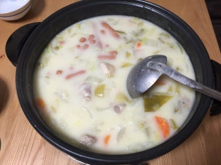 JUGEMテーマ:今日の晩ご飯 今、話題(?)のお鍋 シチュー鍋、やってみました。 最近CMでよく見るから、 美味しそうだなぁって見てました。 で今回は、何入れたっけな?? 白菜、白ネギ、大根、人参、ジャガイモ、玉ねぎ、ほうれん草 ウインナー、鶏肉、つみれ・・・ と、まぁこんなもんだったかと。 あ、写真はほうれん草を入れる前です。 今回はまず、野菜だけ圧力鍋でやらかくしておいて、 写真の鍋で、肉類と少量の水入れてルーを溶かして その後、合わせるって方法で作りました。 なので短...