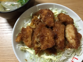 JUGEMテーマ:今日の晩ご飯 カレーをリメイク! 本当は、「カレードリア」とか? 「カレーうどん」とか? ハンバーグ作って、「カレーソース」にするとか に、しようかなぁと思ってたんですけど。 まさかの!! ジャーン 「カツカレー」 リメイク!ではなくて・・・、 トッピング!! 無性にね、 カツが食べたくなったんです。 でも節約したかったから、 トンカツじゃなくて、 チキンカツ。 チキンカレーにチキンカツをトッピングしちまった。 でも、満足 (^^♪ それに2日...