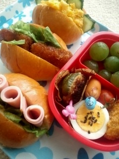 JUGEMテーマ:いつものお弁当今日のお弁当は陸上競技大会の娘チャン2号のリクエストもう何ヶ月も前から(笑)「その日はロールパンサンドにして〜!!!」って。。。気温は夏日になるらしいけど今のところ曇り空でホントに〜〜??って感じですが頑張ってくれたら良いなぁ〜^^娘チャン1号も同じお弁当で「今日はオシャンティーお弁当だ^^」って喜んでました・ロールパンサンド(ハム・カツ・たまご)・ピーマンの肉詰め・ゆで卵・ウインナー・カボコロ(冷食)・ミニトマト&ぶどう