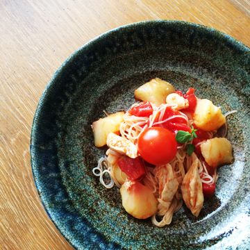 JUGEMテーマ:男の料理 本日のお品書き|料理男子流!白桃とトマトの冷製カッペリーニ☆ 冷製パスタって、ちょっとお洒落感あってテンション上がりませんか? 温暖化の昨今、日本の夏はまだまだ続きます。 そろそろ、夏の疲れがカラダに出る頃、 ちょっとお洒落で、おいしいメニューで元気をチャージしましょう。 甘い白桃とトマトの酸味が絶妙の相性、それを冷たく冷やしていただくと 夏バテ気味で落ちた食欲もみるみる回復します。 それでは、作り方にいきましょう。 ...