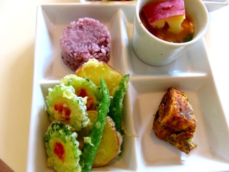 JUGEMテーマ:男の料理 ガッツリ喰ってどうする?美味しいものはいっぱい食べたいけど・・・生活習慣病まっしぐらは嫌だな メタボとか今日は、女子向けやけど 男でも まあ食べても良いかっ!ってプレートランチを作りました。 腹八分目!!そろそろ終りのゴーヤ(京都南部地野菜)種のワタが赤くなって 時期も終りかな でも綺麗だぜそんなゴーヤと地野菜のてんぷらで オシャレなプレートをゴーヤは水荒らしして(浄水したのがおすすめかな)スライス切り 3〜4mm程度種 取って打ち粉して粉と水は1対1170度くらいで揚げる...