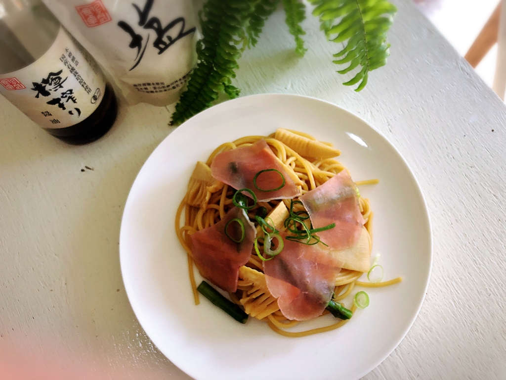 JUGEMテーマ:毎日の簡単1品 こんにちは〜♪ 今日は〜筍とアスパラに生ハムを添えた春パスタ♪ [ PR ] それでは材料です〜⇩⇩⇩ パスタ・・・200g 竹の子水煮・・・200g 生ハム・・・4〜6枚 アスパラ・・・4本 12ヶ月の食卓塩・・・大さじ1 刻み葱・・・適量 ★バター(有塩)・・・20g 12ヶ月の食卓樽搾り醤油・・・大さじ3〜4 ...