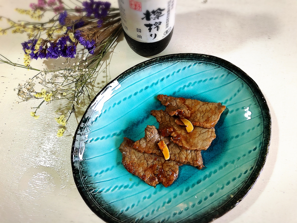 JUGEMテーマ:毎日の簡単1品 こんにちは〜♪ 今日は〜牛肉を自家製にんにく醤油で焼きました♪ [ PR ] それでは材料です〜⇩⇩⇩ 焼き肉用牛肉・・・150〜200g にんにく醤油・・・大さじ2 (12ヶ月の食卓樽搾り醤油50mlにニンニクスライス1片漬けて2日おいたもの) 蜂蜜・・・小さじ1 片栗粉・・・少々 エサンテ4to1脂肪酸バランスオイル・・...
