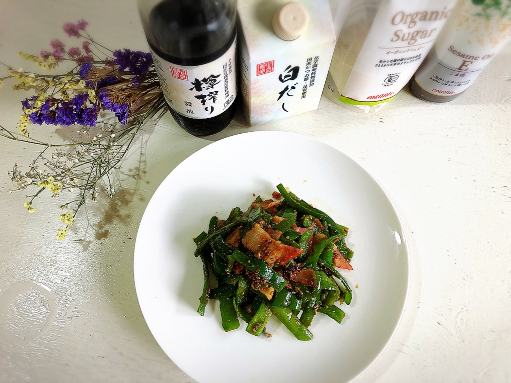 JUGEMテーマ:毎日の簡単1品 こんにちは〜♪ 今日は〜ベーコンとピーマンの胡麻炒め〜♪ [ PR ] それでは材料です〜⇩⇩⇩ ベーコン・・・2枚分くらい ピーマン・・・5〜6個 すり胡麻・・・大さじ2 ★12ヶ月の食卓樽搾り醤油・・・小さじ2 ★本みりん・・・小さじ2 ★エサンテオーガニックシュガー・・・小さじ2 ★12ヶ月の食卓白だし・・・小さじ...