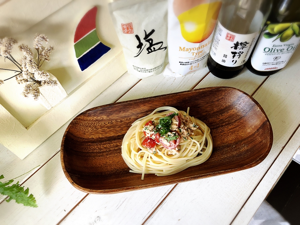 JUGEMテーマ:毎日の簡単1品 こんにちは〜♪ 今日は〜大葉香るトマトとツナの混ぜるだけ冷製パスタ♪ [ PR ] それでは材料です〜♪ パスタ・・・320g ミニトマト・・・15個 ツナ缶・・・1缶 擂り下ろしにんにく・・・1片 大葉・・・適量 ★エサンテマヨネーズタイプ・・・大さじ2 ★12ヶ月の食卓樽搾り醤油・・・大さじ1と1/2 ★エサンテオーガニックエキスト...
