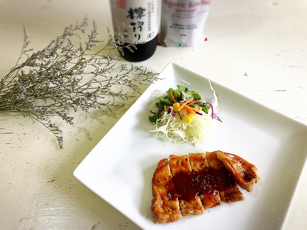 JUGEMテーマ:毎日の簡単1品 こんにちは〜♪ 今日は〜ポークソテーをバーベキューソースで♪ [ PR ] それでは材料です〜⇩⇩⇩ 豚ロース厚切り・・・2枚 12ヶ月の食卓塩・・・少々 胡椒・・・少々 ★12ヶ月の食卓樽搾り醤油・・・大さじ1 ★エサンテオーガニックケチャップ・・・大さじ2 ★蜂蜜・・・小さじ2 付け合わせ野菜・・・お好みで  ...
