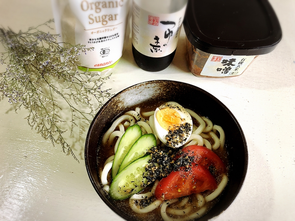 JUGEMテーマ:毎日の簡単1品 こんにちは〜♪ 今日は〜黒胡麻たっぷり冷やしうどん♪ [ PR ] それでは材料です〜⇩⇩⇩ うどん・・・2玉 ★12ヶ月の食卓玄米味噌・・・大さじ1と1/2 ★12ヶ月の食卓つゆの素・・・大さじ8 ★エサンテオーガニックシュガー・・・大さじ1/2〜1 ★黒すり胡麻・・・大さじ4 浄水・・・360ml ゆで卵・・・1個 胡瓜ス...