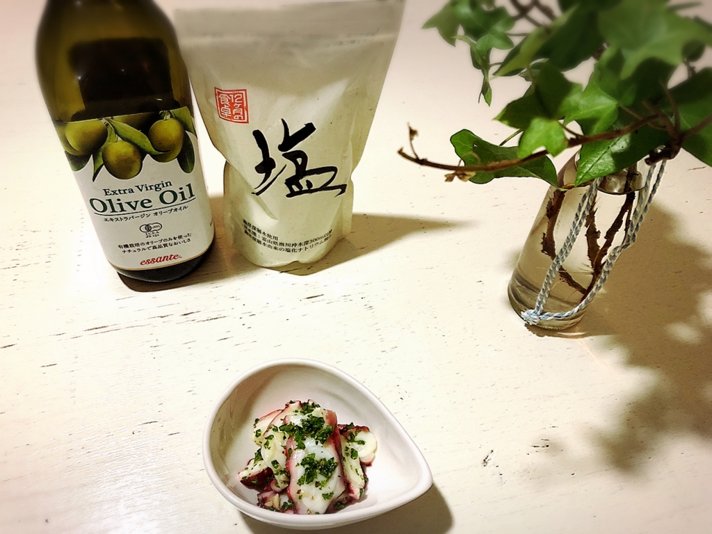 JUGEMテーマ:毎日の簡単1品 こんばんは〜♪ 今日は〜ワインにぴったりなおつまみ♪ [ PR ] それでは材料です〜⇩⇩⇩ 茹でタコ足・・・2本 パセリ・・・1/2束 にんにくみじん切り・・・小さじ2 エサンテオーガニックエキストラバージンオリーブオイル・・・大さじ1 12ヶ月の食卓塩・・・少々 ブラックペッパー・・・少々 以上です〜♪ ...