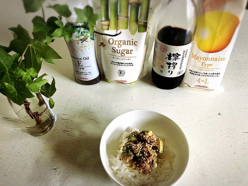 JUGEMテーマ:毎日の簡単1品 こんにちは〜♪ 今日は〜ツナとアボカドでカフェ風丼♪ それでは材料です〜⇩⇩⇩ アボカド・・・1/2個 ツナ缶・・・小1缶 エサンテマヨネーズタイプ・・・適量 ★12ヶ月の食卓樽搾り醤油・・・大さじ1 ★エサンテセサミオイル・・・小さじ1 ★本みりん・・・小さじ1 ★エサンテオーガニックシュガー・・・小さじ1弱 あれば刻み海苔・・・適量 白ごま・・・適量 &n...