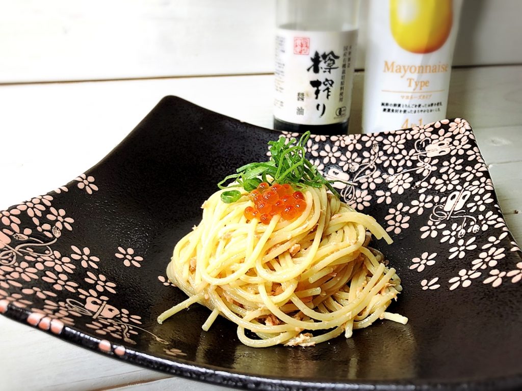JUGEMテーマ:毎日の簡単1品 こんにちは〜♪ 今日は〜鮭フレークで簡単パスタ♪ それでは材料から〜⇩⇩⇩ パスタ・・・180〜200g ★鮭フレーク・・・大さじ4〜5 ★エサンテ4to1マヨネーズタイプ・・・大さじ4〜5 ★12ヶ月の食卓樽搾り醤油・・・大さじ1 ★すりおろしにんにく・・・1/2〜1片 いくらしょうゆ漬け・・・適量 刻み葱・・・適量 以上です〜♪ それではLet&...
