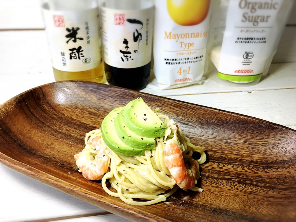 JUGEMテーマ:毎日の簡単1品 こんにちは〜♪ 今日は〜アボカドとボイル海老で濃厚パスタ♪ それでは材料です〜⇩⇩⇩ パスタ・・・180g アボカド・・・1個半 ボイル海老・・・10尾 ★エサンテ4to1マヨネーズタイプ・・・大さじ1 ★12ヶ月の食卓つゆの素・・・大さじ1 ★12ヶ月の食卓米酢・・・小さじ2 ★山葵・・・小さじ2 ★エサンテオーガニックシュガー・・・小さじ1 ★牛乳又は豆乳・・...