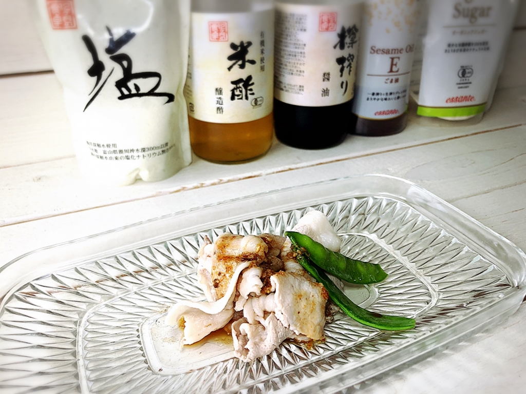 JUGEMテーマ:毎日の簡単1品 こんにちは〜♪ 今日は〜茹で豚にピリ辛ダレをかけていただきます〜♪ それでは材料です〜⇩⇩⇩ しゃぶしゃぶ用豚肉・・・180g ○酒・・・大さじ1 ○12ヶ月の食卓塩・・・少々 ○生姜スライス・・・1/2片 ★12ヶ月の食卓樽搾り醤油・・・大さじ1と1/2 ★すりごま・・・大さじ1と1/2 ★エサンテオーガニックシュガー・・・大さじ1 ★エサンテセサミオイル・・・大...