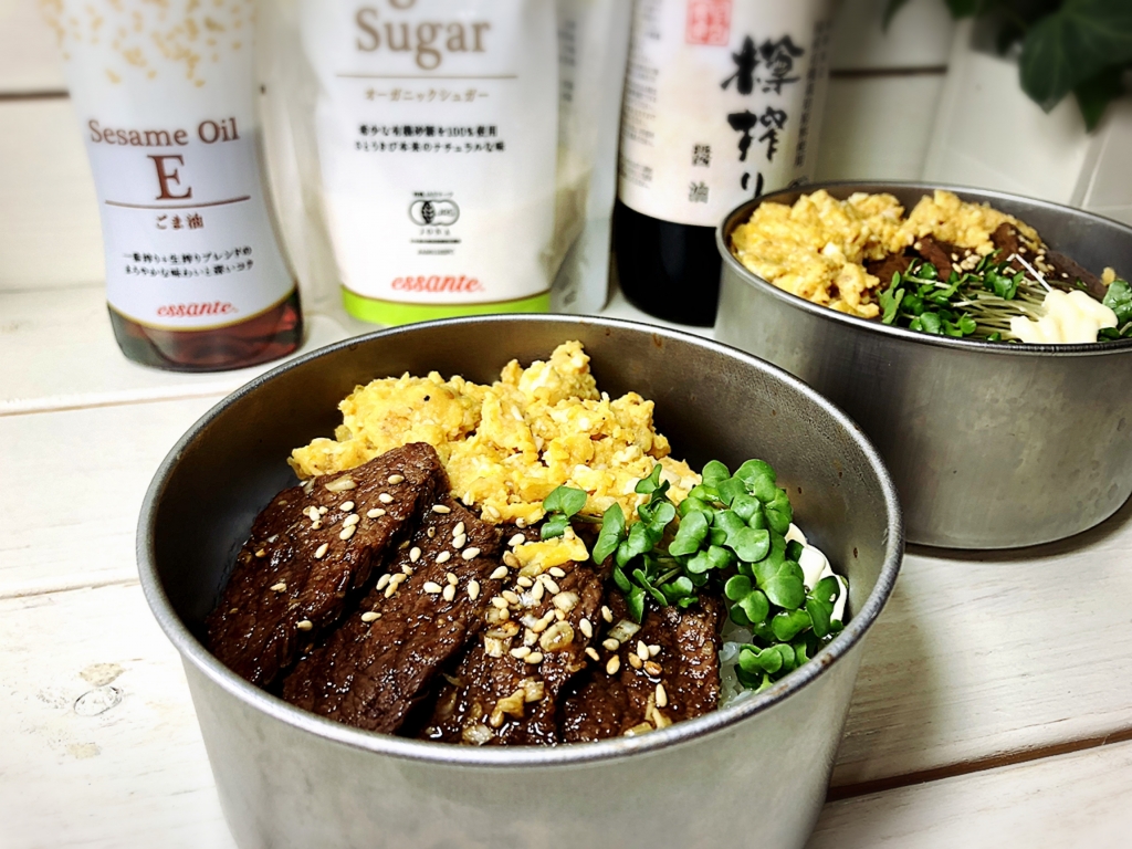JUGEMテーマ:毎日の簡単1品 こんばんは〜♪ 今日は〜自家製だれの焼き肉丼♪ それでは材料です〜⇩⇩⇩ 牛肉・・・120〜130g 卵・・・3個 ★12ヶ月の食卓樽搾り醤油・・・50ml ★本みりん・・・大さじ1と1/2 ★酒・・・大さじ1と1/2 ★エサンテオーガニックシュガー・・・大さじ1と1/2 ★すりごま・・・大さじ1と1/2 ★すりおろしにんにく・・・大さじ1/2 ★白ネギ・・・10センチ エサン...