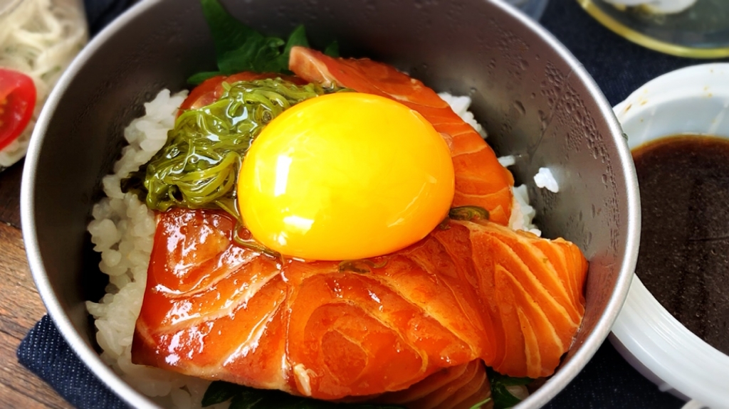 JUGEMテーマ:毎日の簡単1品 こんばんは〜♪ 今日は〜サーモンの漬け丼をめかぶと卵黄乗せで頂きます♪ それでは材料です〜⇩⇩⇩ 刺身用サーモン・・・200gくらい 12ヶ月の食卓樽搾り醤油・・・大さじ3 ★日本酒・・・大さじ2 ★本みりん・・・大さじ1 柚子胡椒・・・小さじ1/2〜1 エサンテセサミオイル・・・小さじ1/2 炊きたてご飯・・・2杯分 めかぶ・・・適量 卵黄・・・2個 大葉・...