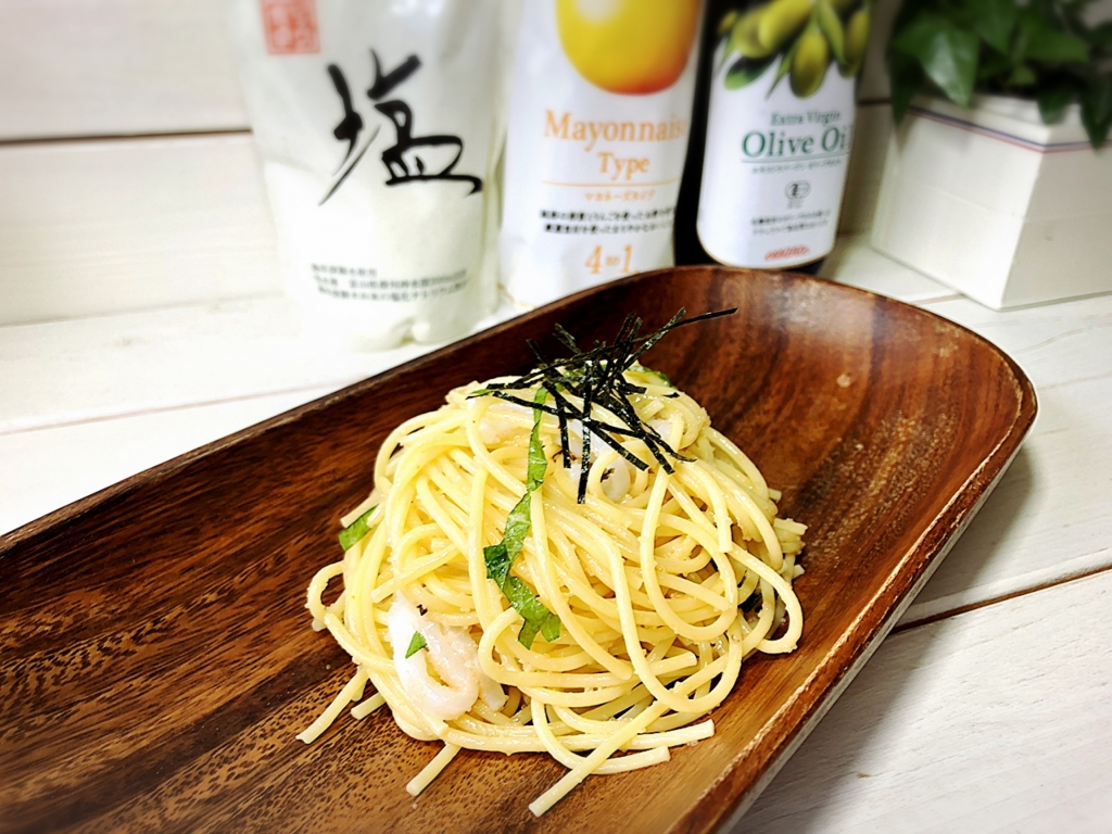 JUGEMテーマ:毎日の簡単1品 こんにちは〜♪ 今日は〜レモン風味のいか明太パスタ♪ それでは材料です〜⇩⇩⇩ パスタ・・・180〜200g いか素麺・・・100g 大葉・・・6〜7枚 白ワイン・・・大さじ1 ★明太子・・・1腹 ★レモン汁・・・1/2個 ★エサンテ4to1マヨネーズタイプ・・・大さじ2 ★エサンテオーガニックエキストラバージンオリーブオイル・・・大さじ2 ★12ヶ月の食卓...