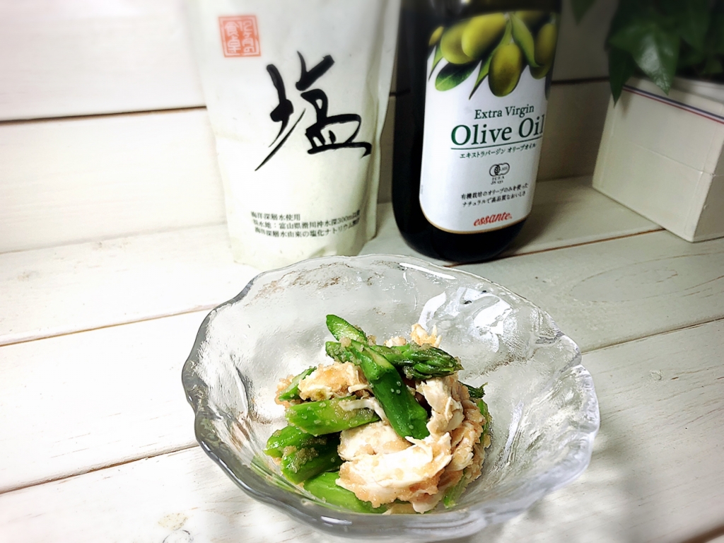JUGEMテーマ:毎日の簡単1品 こんにちは〜♪ 今日は〜旬のアスパラとササミを明太子ソースで和えました♪ それでは材料です〜⇩⇩⇩ アスパラガス・・・5本 鶏ササミ・・・2本 酒・・・大さじ1 ★明太子・・・1腹 ★エサンテオーガニックエキストラバージンオリーブオイル・・・大さじ1と1/2 ★柚子胡椒・・・小さじ1/2 ★レモン汁・・・小さじ1/2 以上です〜♪ それで...