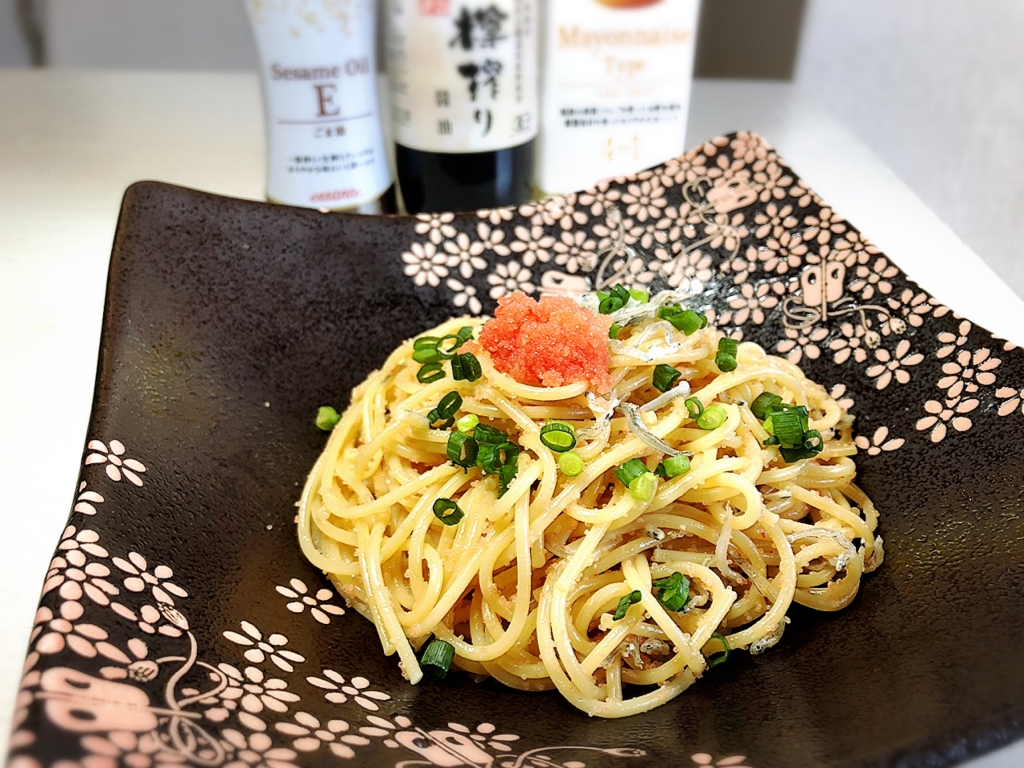 JUGEMテーマ:毎日の簡単1品 こんにちは〜♪ 今日は〜明太子とちりめんじゃこで胡麻油かおる和風パスタ♪ それでは材料です〜⇩⇩⇩ パスタ・・・100g 明太子・・・1/2腹 ちりめんじゃこ・・・大さじ2 刻み葱・・・適量 ★エサンテセサミオイル・・・大さじ1 ★12ヶ月の食卓樽搾り醤油・・・大さじ1 ★エサンテマヨネーズタイプ・・・小さじ1 以上です〜♪ それではLet'...