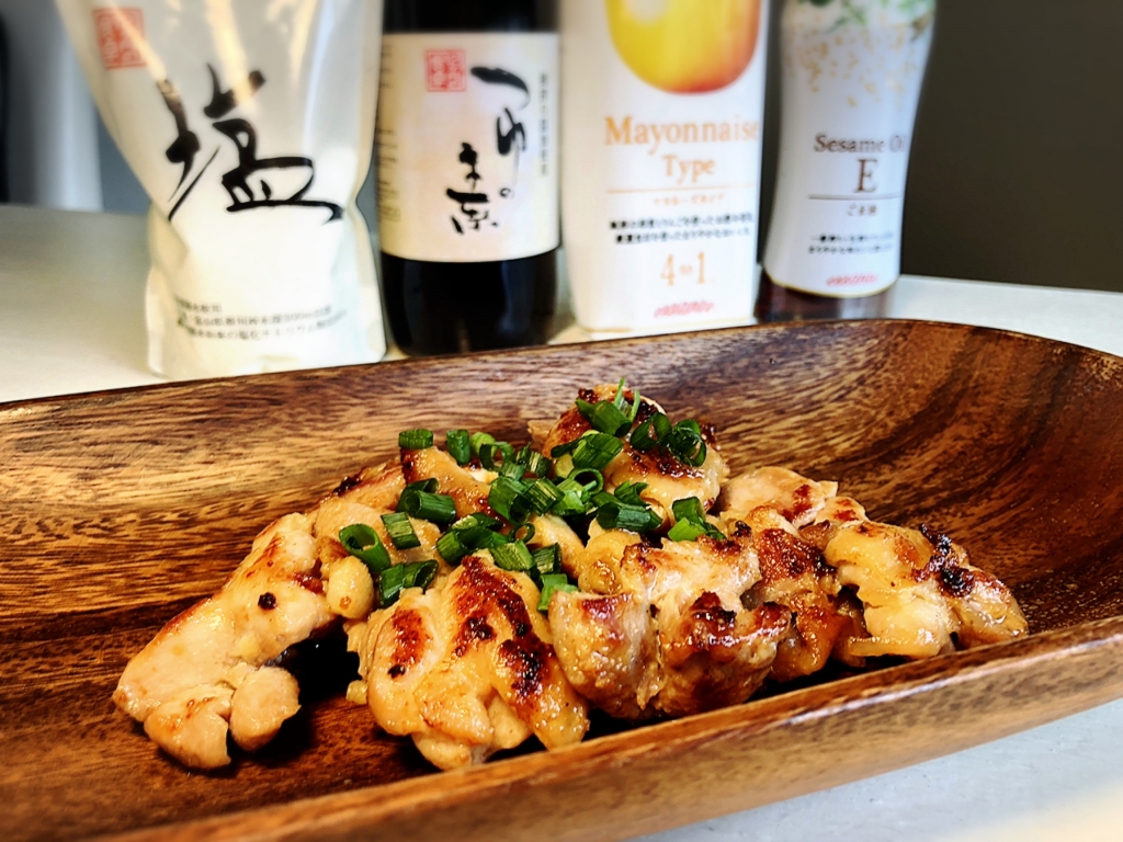 JUGEMテーマ:毎日の簡単1品 こんにちは〜♪ 今日は〜つゆの素とマヨネーズタイプで病み付きになりそうなチキンです〜♪ それでは材料です〜⇩⇩⇩ 鶏もも肉・・・1枚 ★12ヶ月の食卓つゆの素・・・大さじ1 ★エサンテ4to1マヨネーズタイプ・・・大さじ1 ★にんにくすりおろし・・・少々 ★12ヶ月の食卓塩・・・少々 ★胡椒・・・少々 ★エサンテセサミオイル・・・大さじ1 刻み葱・・・適量  ...