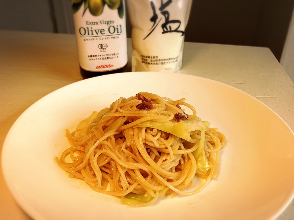 JUGEMテーマ:毎日の簡単1品 こんばんは〜♪ 今日は〜春キャベツとアンチョビでパスタ♪ それでは材料です〜⇩⇩⇩ パスタ・・・180〜200g 春キャベツ・・・1/4個 アンチョビフィレ・・・6枚 エサンテオーガニックエキストラバージンオリーブオイル・・・大さじ2 にんにくみじん切り・・・1片 鷹の爪輪切り・・・1つまみ 茹で汁・・・お玉1杯分 12ヶ月の食卓塩・・・適量 以...