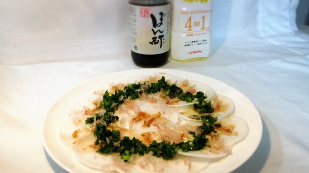 JUGEMテーマ:毎日の簡単1品 こんにちは〜♪ 今日は〜かぶで簡単カルパッチョ♪ それでは材料です〜⇩⇩⇩ かぶ・・・1個 かぶの葉・・・適量 12ヶ月の食卓塩・・・少々 鰹節・・・少々 ★12ヶ月の食卓ぽん酢・・・大さじ1 ★エサンテ4to1脂肪酸バランスオイル・・・小さじ1 ★擂り下ろしにんにく・・・少々 以上です〜♪ それではLet's cooking! かぶをス...