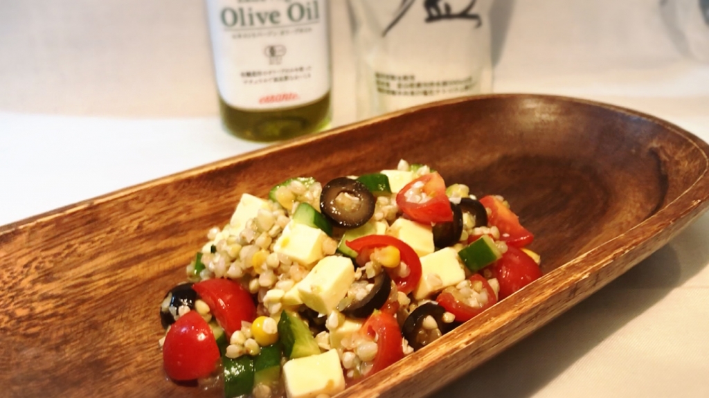 JUGEMテーマ:毎日の簡単1品 こんにちは〜♪ 今日は〜蕎麦のみで栄養たっぷりサラダです♪ それでは材料です〜⇩⇩⇩ 蕎麦の実・・・60g 胡瓜・・・1/2本 ミニトマト・・・4個 プロセスチーズ・・・45g コーン・・・大さじ2 ブラックオリーブ・・・20g ★エサンテオーガニックエキストラバージンオリーブオイル・・・大さじ1.5 ★レモン汁・・・小さじ1 ★バルサミコ酢・・・小さじ...