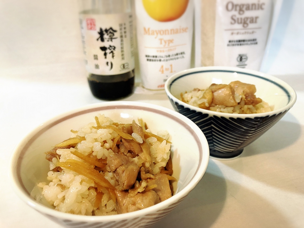 JUGEMテーマ:毎日の簡単1品 こんばんは〜♪ 今日は〜鶏もも肉とささがきごぼうをてりマヨで味付けして混ぜご飯に〜♪ それでは材料です〜⇩⇩⇩ 鶏もも肉・・・1枚 ささがきごぼう・・・70g ☆酒・・・大さじ2 ☆エサンテオーガニックシュガー・・・小さじ1 ☆12ヶ月の食卓樽搾り醤油・・・小さじ1 エサンテマヨネーズタイプ・・・小さじ2 ★エサンテオーガニックシュガー・・...