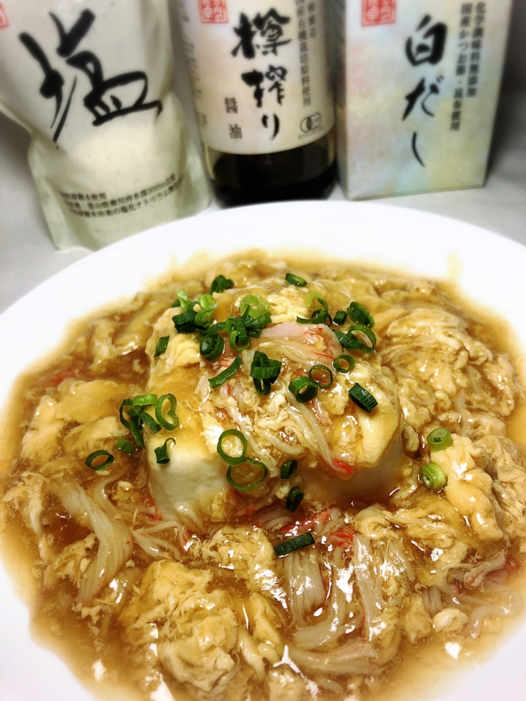 JUGEMテーマ:毎日の簡単1品 今日は〜あんかけ豆腐♪ それでは材料から〜 絹ごし豆腐・・・150g 溶き卵・・・1個 カニカマ・・・1本 ☆浄水・・・250ml ☆12ヶ月の食卓白だし・・・小さじ1.5 ☆酒・・・小さじ1 ☆みりん・・・小さじ1 ☆12ヶ月の食卓樽搾り醤油・・・大さじ1 ☆12ヶ月の食卓塩・・・小さじ1/4 ☆すりおろし生姜・・・小さじ1/2 水溶き片栗粉・・・大さじ2 刻み葱(小口)・・・適量 ...