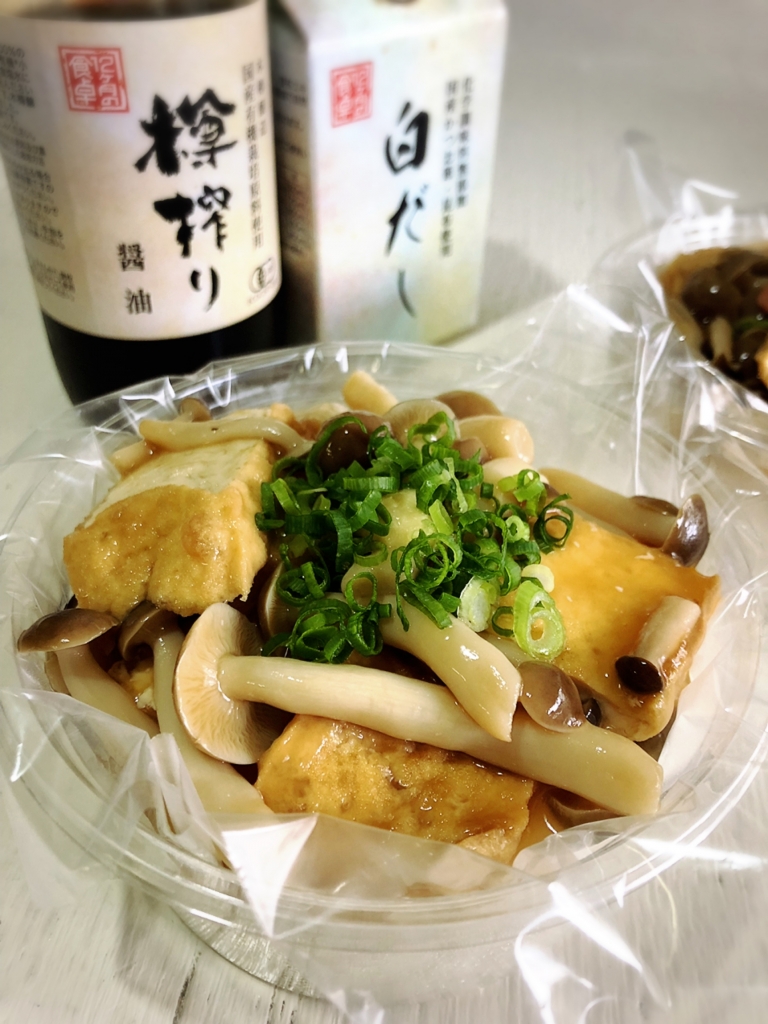 JUGEMテーマ:毎日の簡単1品 今日は〜きのこでお弁当丼♪ それでは材料から〜 炊きたてご飯・・・丼1杯 しめじ・・・1パック 厚揚げ(小)・・・1個 ☆だし汁・・・200ml(白だし+浄水) ※濃さはお好みで調整してね ☆12ヶ月の食卓樽搾り醤油・・・小さじ2 ☆みりん・・・小さじ2 ★片栗粉・・・小さじ1.5 ★浄水・・・小さじ3 生姜すりおろし・・・小さじ1/2 葱又は三つ葉等・・・適量 以上です! それではLet's...