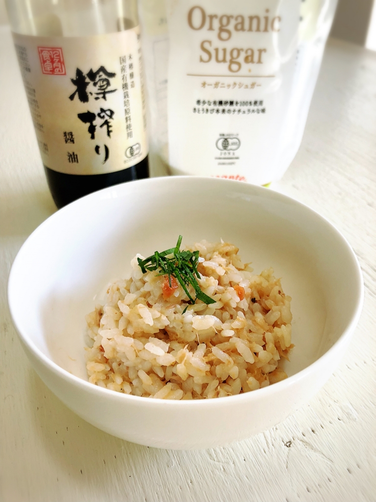 JUGEMテーマ:毎日の簡単1品 今日は〜ツナと梅で混ぜご飯♪ それでは材料から〜 梅干し・・・大2〜3個 ツナ缶・・・1缶 ☆12ヶ月の食卓樽搾り醤油・・・大さじ1 ☆みりん・・・大さじ1 ☆エサンテオーガニックシュガー・・・小さじ1/2 炊きたてご飯・・・2合 以上です! それではLet's cooking! 梅は叩いて細かくします。 フライパンを中火で予熱し、ツナのオイルを軽く絞ってから☆とあわ...