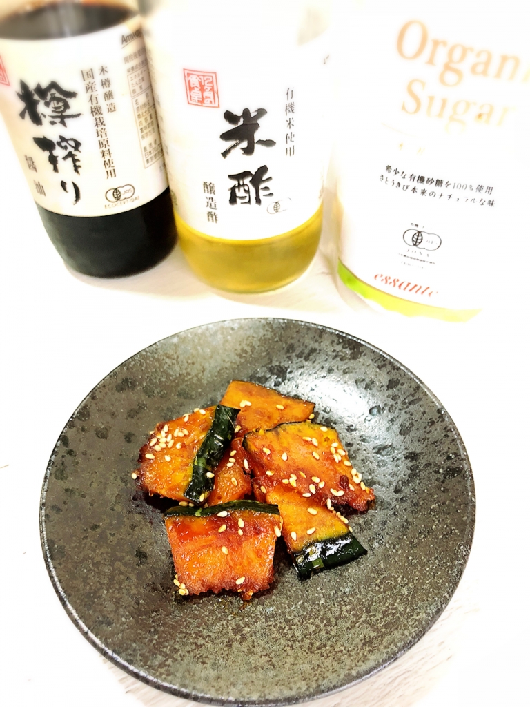JUGEMテーマ:毎日の簡単1品 こんにちは♪ さて今日の1品は、かぼちゃを使い簡単甘辛焼きです。 それでは材料です〜 かぼちゃ・・・1/3個 ☆12ヶ月の食卓樽搾り醤油・・・大さじ2 ☆エサンテ4to1オーガニックシュガー・・・大さじ2 ☆12ヶ月の食卓米酢・・・大さじ1 白ごま・・・適量 以上です! それではLet's cooking! スポンサーリンク 先ずは、かぼちゃを食べや...