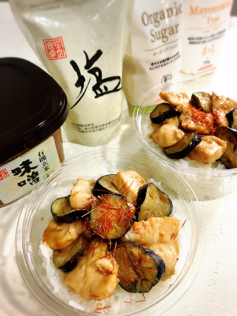 JUGEMテーマ:毎日の簡単1品 今日は〜またまた丼♪鶏胸肉と茄子♪ ] それでは材料から〜 鶏胸肉・・・1枚(200g)) 茄子・・・1〜2本 片栗粉・・・適量 エサンテ4to1脂肪酸バランスオイル・・・大さじ1 ☆酒・・・大さじ1 ☆エサンテオーガニックシュガー・・・小さじ1 ☆12ヶ月の食卓塩・・・少々 ☆胡椒・・・少々 ★エサンテマヨネーズタイプ・・・大さじ1と1/2 ★みりん・・・大さじ1と1/2 ★12ヶ月の食卓樽搾り醤油・・・小さじ1 ★...