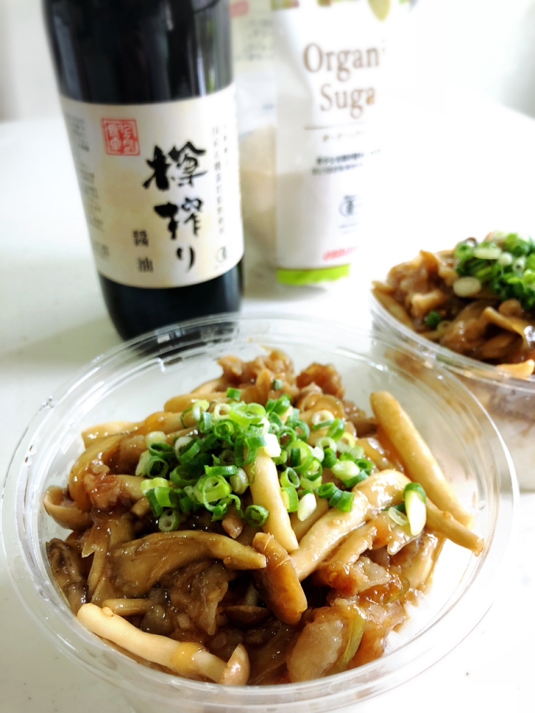 JUGEMテーマ:毎日の簡単1品 それでは材料から〜 <丼2杯分> しめじ・・・1パック 舞茸・・・1パック 玉ねぎ・・・1/2個 豚バラ薄切り・・・200g 酒・・・大さじ1と1/2 片栗粉・・・大さじ1と1/2 おろし生姜・・・小さじ2/3 おろしにんにく・・・小さじ2/3 ☆12ヶ月の食卓樽搾り醤油・・・大さじ2 ☆酒・・・大さじ2/3 ☆エサンテオーガニックシュガー・・・大さじ2/3 白ごま・・・大さじ2/3 ご飯・・・2人前 以上です! そ...