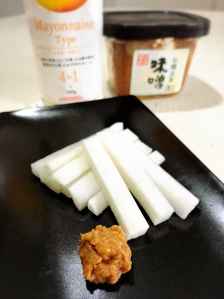 JUGEMテーマ:毎日の簡単1品 今日は〜大根♪ それでは材料から〜 大根・・・10センチ ☆12ヶ月の食卓玄米味噌・・・大さじ1 ☆エサンテマヨネーズタイプ・・・大さじ1/2 ☆すりおろしにんにく・・・少々 以上です! それではLet's cooking! 大根を短冊切りにします。 ーーーーーーーーーーーーーーーーーー 国産 だいこん ダイコン 大根 1箱10kg ...