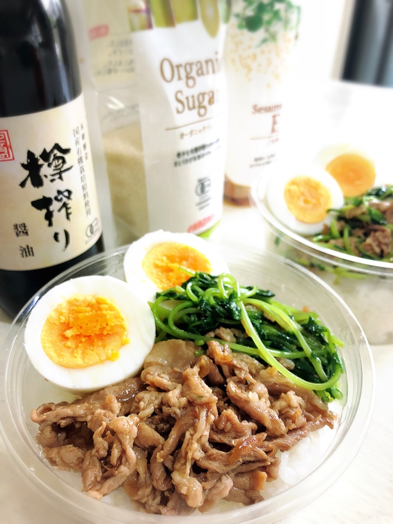 JUGEMテーマ:毎日の簡単1品 今日は〜豚肉と豆苗でルーロー♪ それでは材料から〜 豚細切れ・・・200g 豆苗・・・1パック ゆで卵・・・2個 ご飯・・・2杯分 ☆酒・・・大さじ2 ☆片栗粉・・・小さじ1 ★酒・・・大さじ2 ★12ヶ月の食卓樽搾り醤油・・・大さじ1 ★オイスターソース・・・大さじ1 ★エサンテオーガニックシュガー・・・大さじ1 生姜すりおろし・・・1片 エサンテ4to1セサミオイル・・・小さじ2 以上です! ...